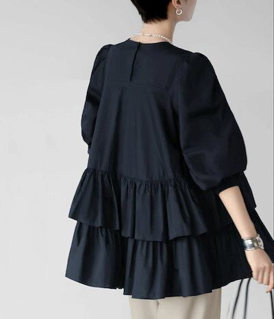 フリル ロングブラウス 3色 春 七分袖 お尻すっぽり 体型カバー チュニックレディース ブラウス