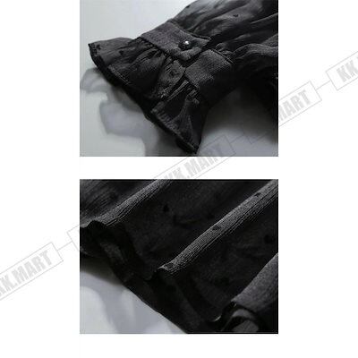 ブラウス ドット柄 レディース トップス プルオーバー 長袖 シースルー ハイネック フリル 裏地 大きいサイズ 春秋冬 シフォン 水玉柄 ぽわん袖 フリルブラウス
