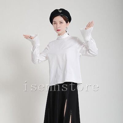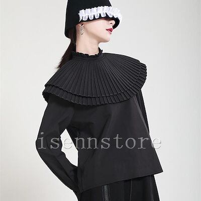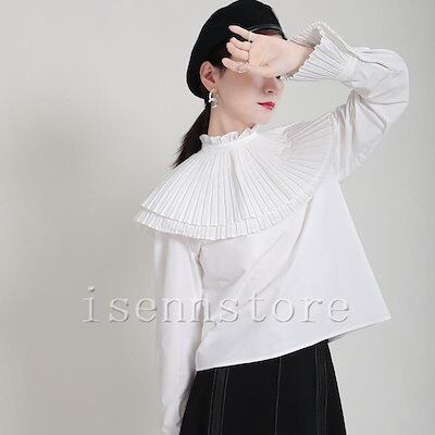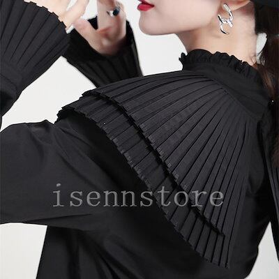 速達!クラシカル プリーツケープカラー 立ち襟 ブラウス フリル レディース 長袖 シャツ ブラウス 二の腕カバー モード系 オフィス 無地 フォーマル
