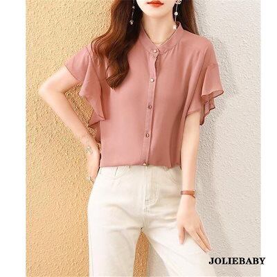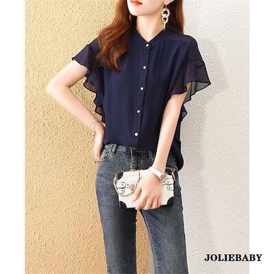 セール ブラウス 半袖 レディース シャツ トップス 切替 カットソー フリル 流行り 通勤 春夏 Tシャツ 一部 柔らかい チュニック ふわっと