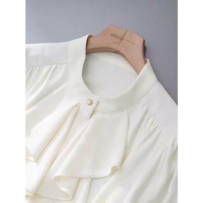 品物を厳選するブラウス シャツブラウス レディース ス シャツ 長袖 長そで スタンドカラー 立ち襟 シフォン 無地 フリル 羽織り 羽織 薄手 きれいめ 春