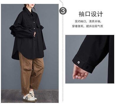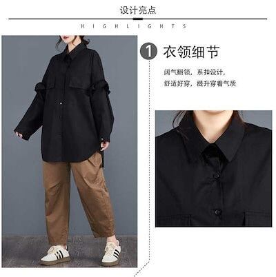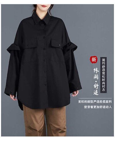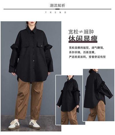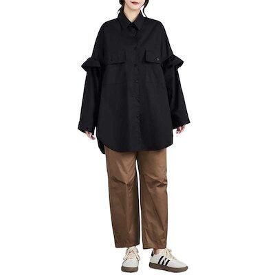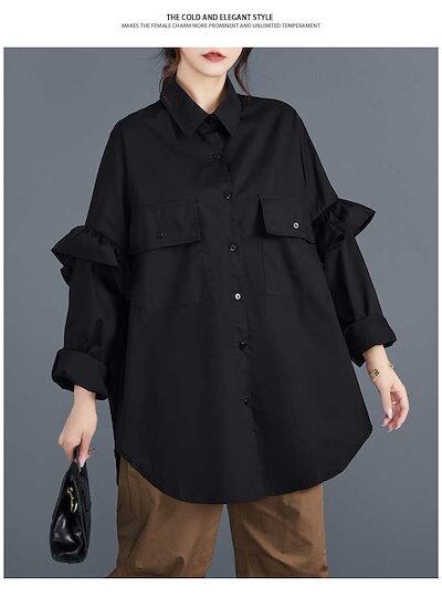 「ファットガール」 2024秋新品 ロングブラウス フリル飾り 大きいポケット 体型カバー 大きいサイズ レディース シャツ メガ割