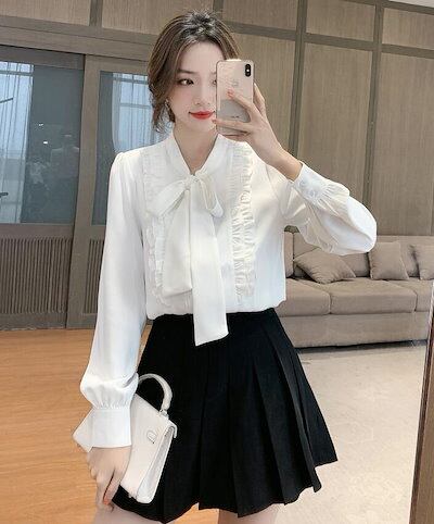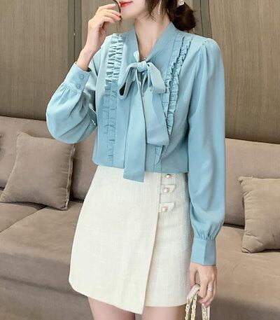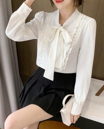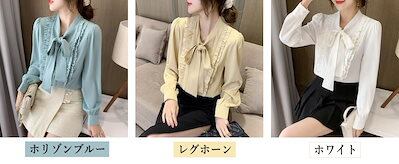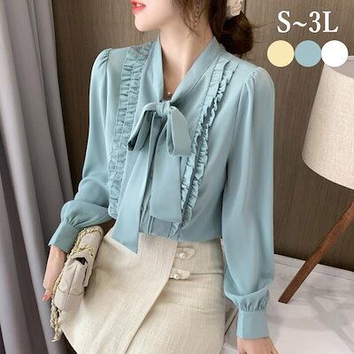 ボウタイブラウス ブラウス シャツ ボウタイ フリル シフォン レディース スーツ 胸元 長袖 大きいサイズ カジュアル フォマール 通勤 卒業式 卒園式 オフィス S M L 2L 3L