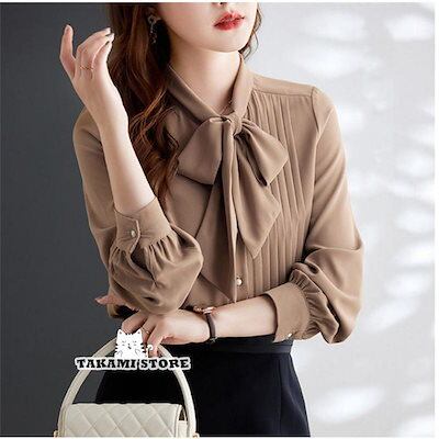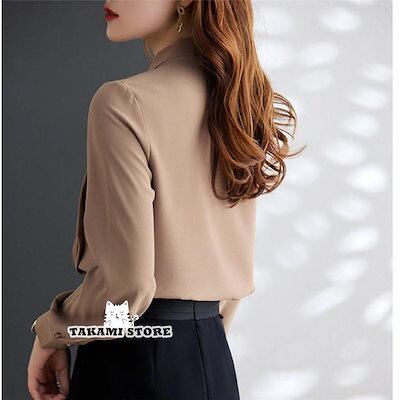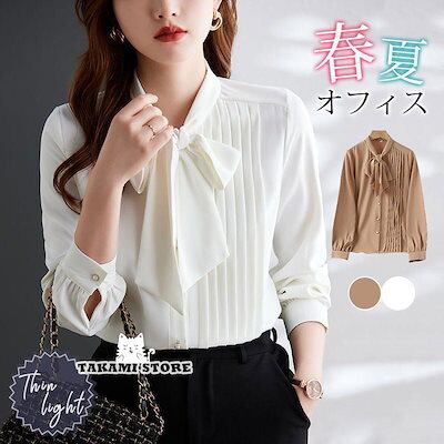 【制服標準装備】ブラウス 長袖 春 レディース オフィス シャツ ボリューム袖 リボン 入学式 仕事 トップス 通勤 スーツ インナー シフォン 卒業式 ビジネス
