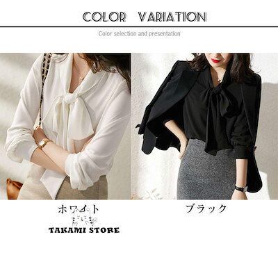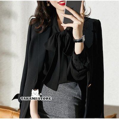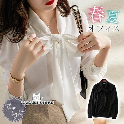 【制服標準装備】シャツ ブラウス 春夏 秋 シフォン レディース リボン 長袖 ボリューム袖 シャツ オフィス トップス 通勤 スーツ インナー ビジネス 入園式