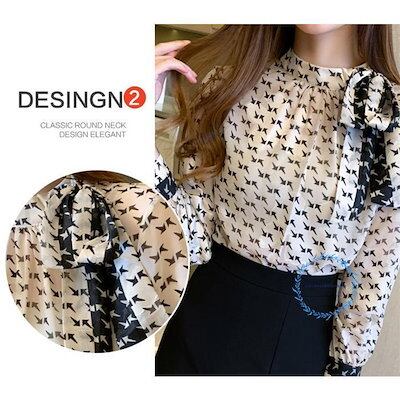 【3月新品】ボウタイブラウス ブラウス レディース 長袖ブラウス 春秋 オフィスブラウス リボンネック プリント オシャレブラウス シフォントップス 韓国風 大人 通勤