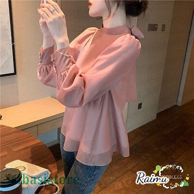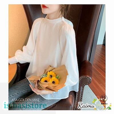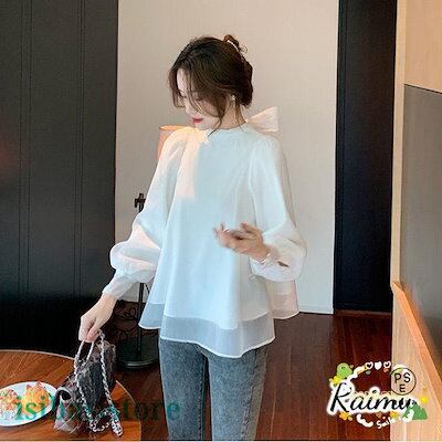 新品登場 ふんわり バックリボン シフォン ブラウス レディース トップス ゆったり ホワイト ピンク フェミニン 無地 リボン 大きいサイズ