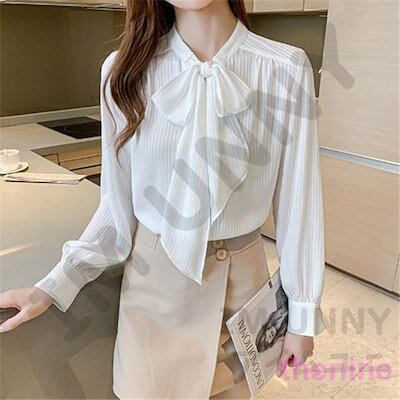 超目玉新品 シャツ レディース 長袖 ブラウス トップス 無地 可愛い 秋服 ゆったり ボウタイリボン シンプル 30代 40代 ママ 体型カバー 入園式