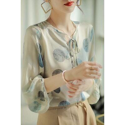 人気新品 ブラウス レディース 七分袖ブラウス 春夏 オフィスブラウス ドット柄 リボン パフスリーブ オシャレブラウス レショントップス 韓国風 大人 通勤ゆったりシャツ