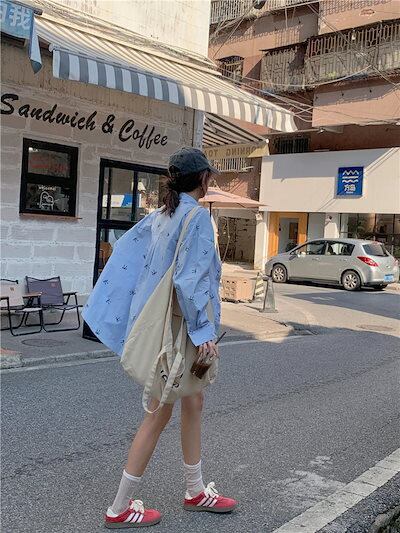 25トップス シャツ 長袖 ボタン 襟 スタンダードカラー リボン 大きめサイズ 丈長め ゆったり 細見え 水色 ライトブルー おしゃれ かわいい 韓国ファッション レディース お出かけ
