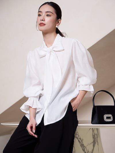 【CY.上品】通勤 ブラウス リボン 綺麗 シフォンブラウス 長袖 レディース ブラウス