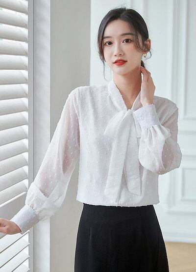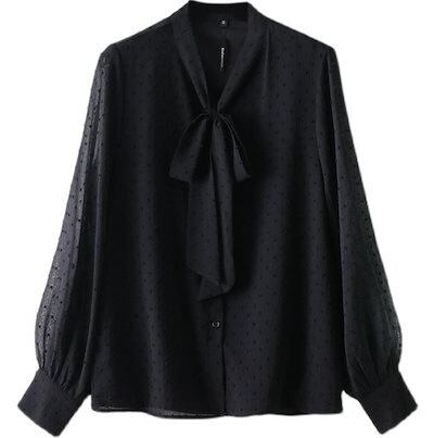 ブラウス レディース シフォン シャツ ボウタイ リボン フェミニン きれいめ 可愛い 胸元 長袖 大きいサイズ 透け 卒業式 卒園式 オフィス L おしゃれ