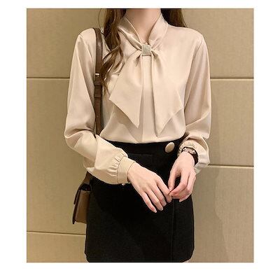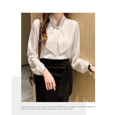 ブラウス レディース ビッグリボン 長袖 ボリュームスリーブ 綿混 ボウタイ おしゃれ きれいめ