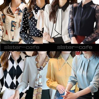 フェアリーストーン ブラウス シャツ トップス レディース 長袖 シフォン リボン ック 無地 カジュアル フォーマル ブラウス 長袖 オフィス トップス 花柄 丸襟 レディース1526