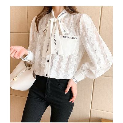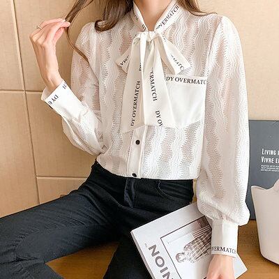 ブラウス レディース きれいめ 40代 新作 オシャレブラウス 白レースシャツ 長袖トップス リボンネックブラウス 大人 通勤 ゆったり シャツ30代 50代1196