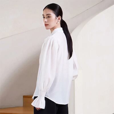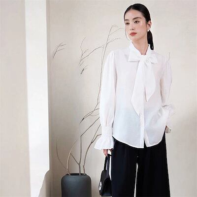 ボウタイブラウス ブラウス 長袖 レディース トップス リボンタイ リボン シャツ リボンブラウス バルーン袖 前開き きれいめ ト スーツー 長袖ブラウス ロングブラウス シャツブラウス 女性 上品