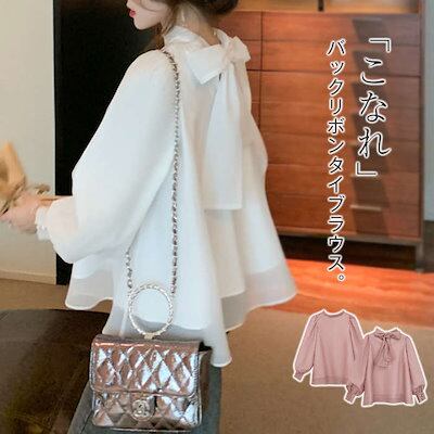 ブラウス レディース ボウタイ シャツ バックリボンデザイン 長袖 オフィス 可愛い 春 トップス プルオーバー きれいめ 大人 お洒落 カジュアル シンプル 前開き 体型カバー オールシーズン ゆっ