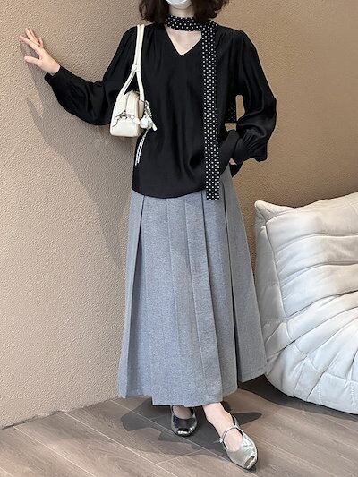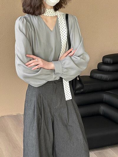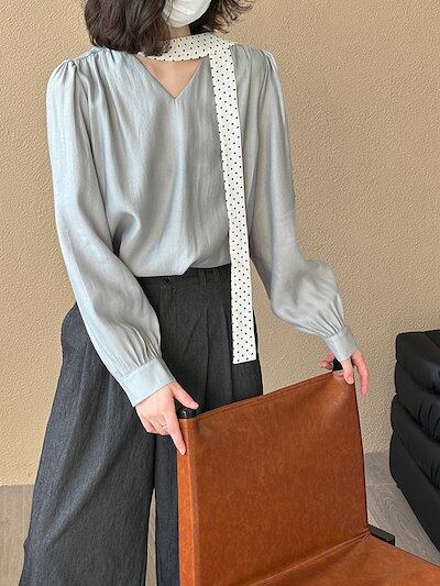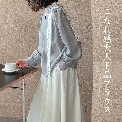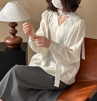 リボンタイブラウス バルーンスリーブ ブラウス ボリューム袖 長袖 無地 シャツ きれいめ ゆったり トップス レディース 秋 冬 春 30代 40代 50代 おしゃれ きれいめ 上品