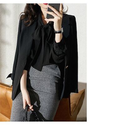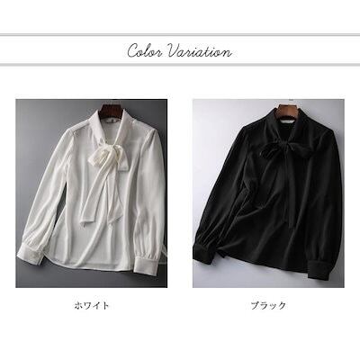 ブラウス レディース シャツブラウス 春 秋 白 黒 ボウタイシャツ ブラウス シャツ トップス 無地 長袖 冬 秋冬 リボンタイ ホワイト ブラック オフィス カジュアル