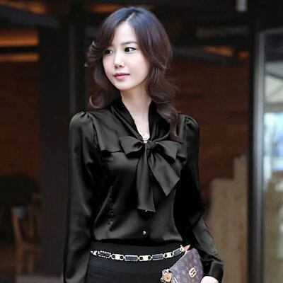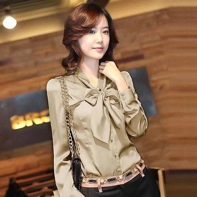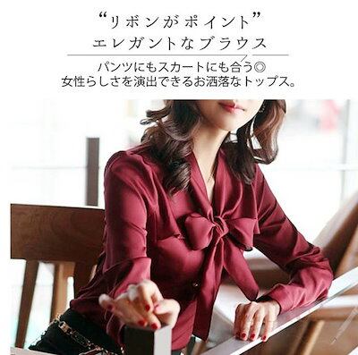 シャツ ブラウス レディース リボン トップス フリルブラウス 落ち感 魅力 お洒落 プルオーバー 長袖 無地 エレガント オフィス 通勤 デート お出掛け 春 入学式 入園式 卒業式 卒園式 新生活