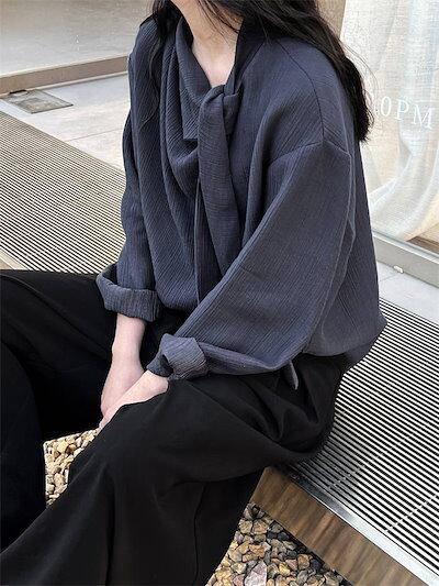シャツ レディース 長袖 秋 春 無地 ブラウス シャツブラウス リボン トップス カジュアル 大きいサイズ アシンメトリー 体型カバー ナチュラル おしゃれ 通勤 秋 冬 春 オフィス シンプル 着