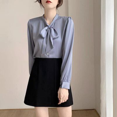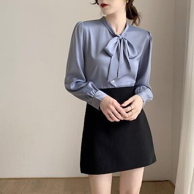 シャツ ブラウス シャツブラウス レディース 長袖 ネックリボン 春 秋 トップス ボウタイブラウス スーツインナー 無地 大人 かわいい きれいめ おしゃれ オフィス 通勤 ホワイト ブラック リク