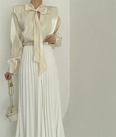 ボウタイブラウス ブラウス レディース きれいめ 長袖 フォーマル 春秋新作 オシャレブラウス 光沢感シャツ 長袖トップス リボンネック 上品 大人 通勤 ゆったり シャツ 通勤 OL エレガント 3