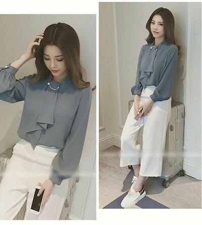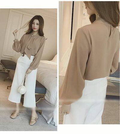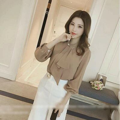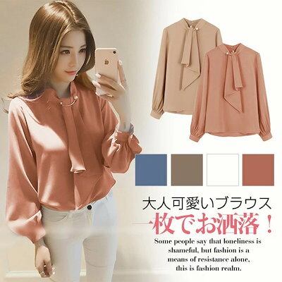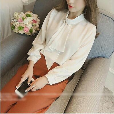 ブラウス レディース とろみシャツ ゆるシャツ プルオーバー シフォン 長袖 トップス ゆる シャツ 無地 カジュアル フォーマル シンプル 普段着 通勤 OL リボン 春 秋