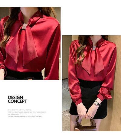 ボウタイブラウス 長袖 ブラウス ボウタイ シャツブラウス とろみシャツ レディース ブラウス レディース きれいめ 40代 春秋新作 オシャレブラウス シルク風シャツ 長袖トップス リボンVネックブ