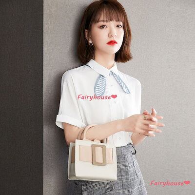 ブラウス レディース 40代 新作 オシャレブラウス 白シフォンシャツ リボンネック オフィスブ