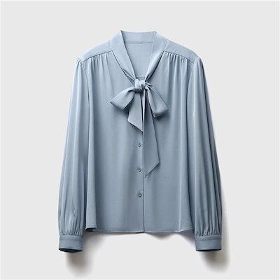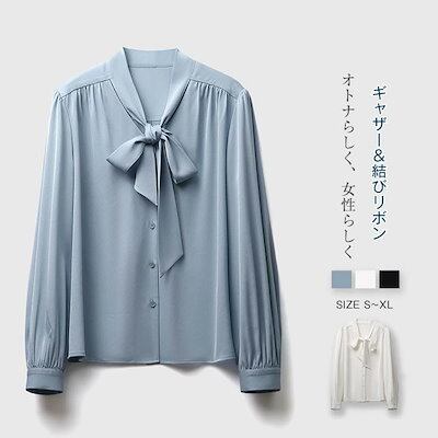 ボウタイ シャツ ブラウス レディース 春秋 秋冬 長袖 キレイめ トップス シャツブラウス フォーマル オフィス リボン 結びリボン 結び襟 リボンタイ サテン ブラウス 着まわし ボウタイリボン
