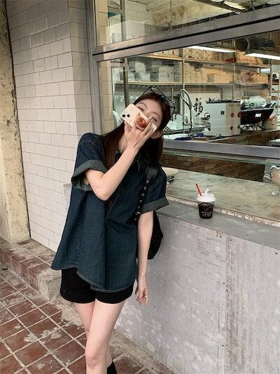 【裕福になる】24トップス デニムシャツ 半袖 ボタン 襟 スタンダードカラー ゆったり おしゃれ かわいい カジュアル 韓国ファッション レディース お出かけ