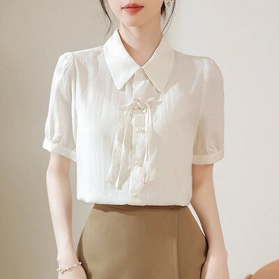 今っぽシアーシャツ 夏先取りブラウス シャツ シックなファッション レディース 半袖 2024 夏 新作 韓国製 ボタン ホワイト ブラウス トップス 韓国ファッション