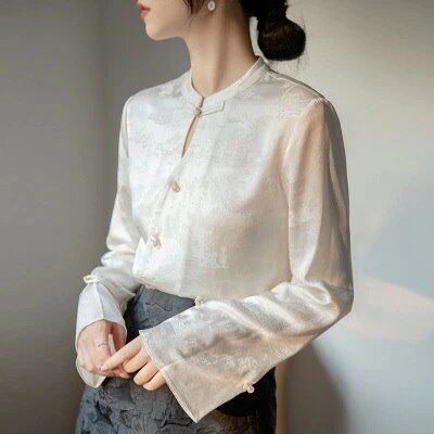 【最安値に挑戦】今っぽシアーシャツ 長袖 2025新しいジャカードシャツの新しい中国のディスクボタンシャツ ブラウス レディース韓国ファッション オフィス カーディガン