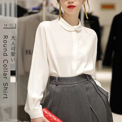 白 襟付き シャツ レディース 長袖 オフィス 上質 ブラウス フォーマル 丸襟 長袖シャツ ふんわり 柔らかい 軽い シャツブラウス 黒 グレー 白シャツ ボタン隠し カジュアルシャツ 無地 オフィ