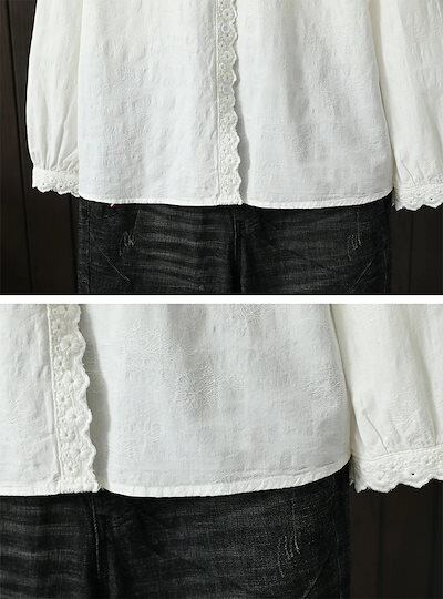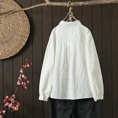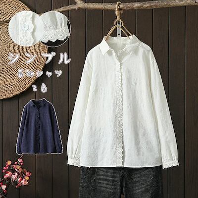 【春新作】白シャツ 長袖 ブラウス レディース 春 トップス シャツ チュニック 綿100% 長袖シャツ シャツブラウス 刺繍 切替 レース 綿 通勤シャツ コットン 折り襟 無地 前開き ボタン留め
