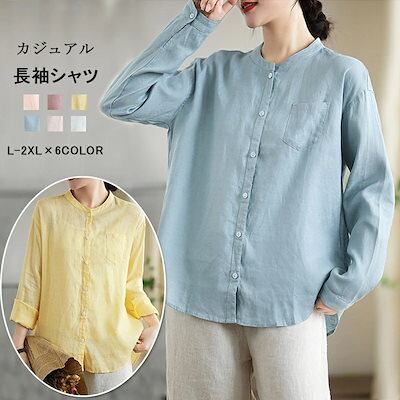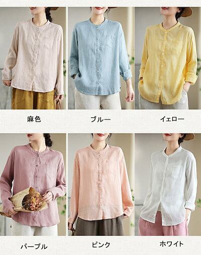 長袖シャツ チュニック シャツ レディース 秋 無地 綿麻風 シャツブラウス ロングシャツ ブラウス 長袖 綿 トップス 体型カバー ゆったり 立ち襟 ライトアウター アウター 前開き ボタン止め 大