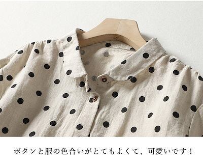 半袖シャツ シャツ ブラウス シャツブラウス レディース 夏 ドット柄シャツ トップス 水玉 半そで 綿麻風 ドット 前開き 丸襟 ボタン止め 半袖 ゆったり カジュアル シンプル 通気性 上品 おし