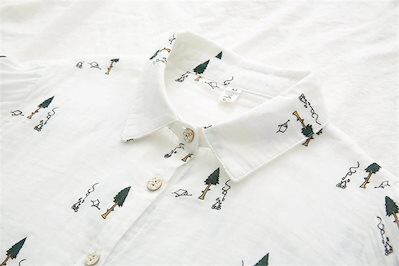 シャツ ガーゼ ブラウス レディース ホワイトシャツ 白シャツ 柄 長袖 秋 ホワイト ブラウス コットン 綿 柔らか シンプル 折り襟 ボタン留め 大きいサイズ 40代 通勤 通学 通気性よい 前開