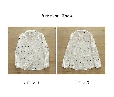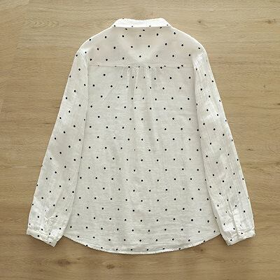 長袖 シャツ レディース 綿 コットン 春 ブラウス ドット柄 シャツブラウス チュニック 白シャツ 長袖シャツ 綿100% 夏 通気性 折り襟 前開き ボタン留め 綿シャツ ゆったり カジュアル き