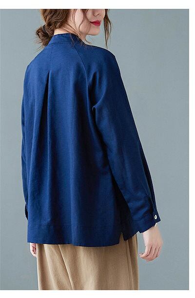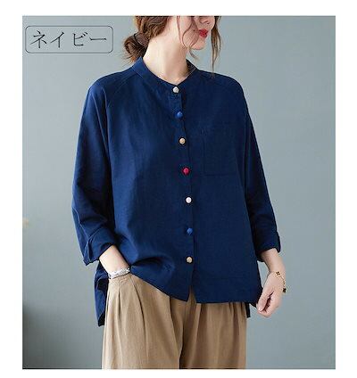 トップス シャツ レディース 長袖 ブラウス シャツブラウス 無地 秋 長袖シャツ 綿麻 リネン 綿麻シャツ コットン ホワイトシャツ 白シャツ ゆったり 大きいサイズ uネック ボタン付き 秋物 春