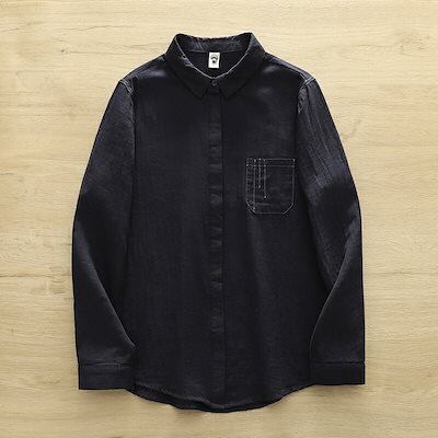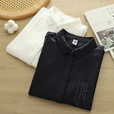 長袖 シャツ レディース 綿 コットン 春 ブラウス 長袖シャツ 綿100% チュニック 長袖ブラウス シャツブラウス 長袖トップス ダブルガーゼ 夏 通気性 折り襟 ボタン留め 前開き 白シャツ ゆ