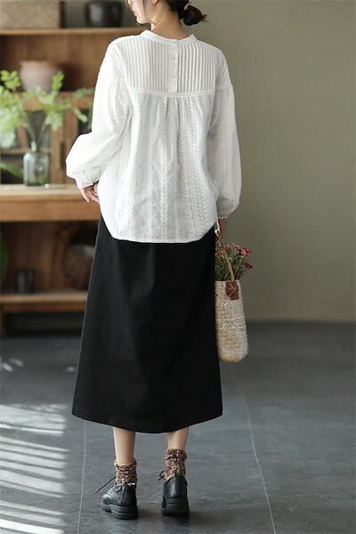 ピンタック ブラウス シャツブラウス レディース シャツ ブラウス レース 刺繍 バックボタン 長袖 トップス フォーマル オフィス カジュアル 無地 着回し 上品 きれいめ 春 秋 冬 体型カバー