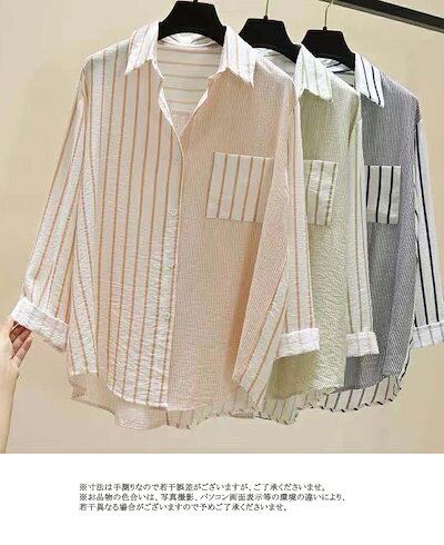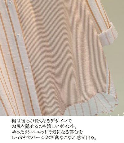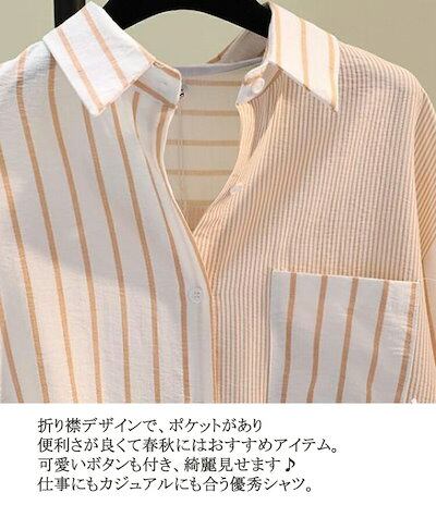 ストライプ シャツ レディース 春 秋 切り替えシャツ 折り襟 デザインシャツ 切り替え シャツ 前開き 春 トップス 長袖 羽織り ボタン付き ブラウス 全開 コート デザイン レイヤード アウタ