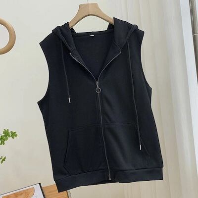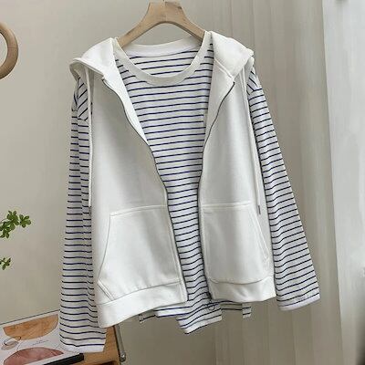 ベスト レディース 春 夏 パーカー 前開き フード付き ジップアップ パーカーベスト ノースリーブ ゆったり カットソーベスト 重ね着 レイヤード スウェット アウター お洒落 トップス 無地 ブラ