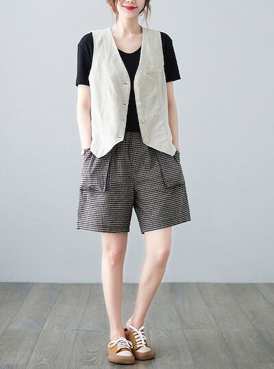 ベスト リネン ジレ 綿麻 コットン レディース 春夏 前開き Vネック 前開きベスト レイヤード 裾 不規則 トップス ノースリーブ 羽織 ミドル丈 夏ベスト 薄手 きれいめ カジュアル 無地 ベー