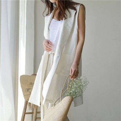 ジレ レディース ベスト 春夏 ロングジレ リネン ノースリーブ リネン テーラードジレ 綿麻 トレンチベスト テーラード風 無地 ジレンチ トップス ロングベスト 春 秋 夏 大きいサイズ 春 上品