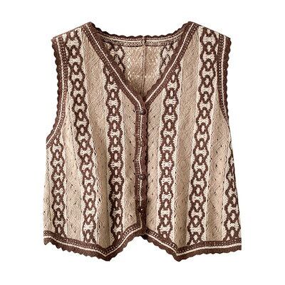 ベスト レディース サマー 透かし編み ジレ ベスト ニット ベスト レディース 前開き トップス 大きいサイズ ジレ レディース ベスト 春夏 ショート丈 花柄 春ベスト 透かし編み ノースリーブ
