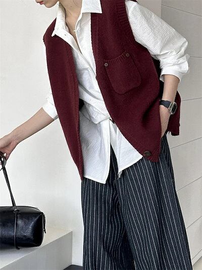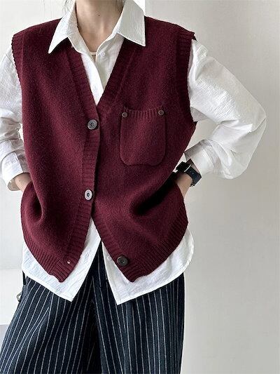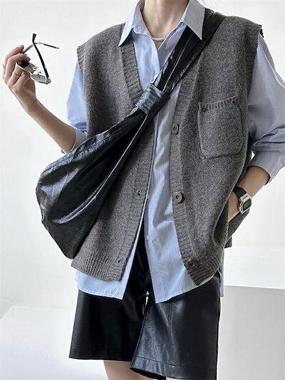 ニット ベスト レディース ニットベスト ジレ Vネック ニットアウター セーター ノースリーブ レイヤード ニットトップス 重ね着 ショート丈 春 秋 ジャケット ポケット付き 無地 ショート 柔ら