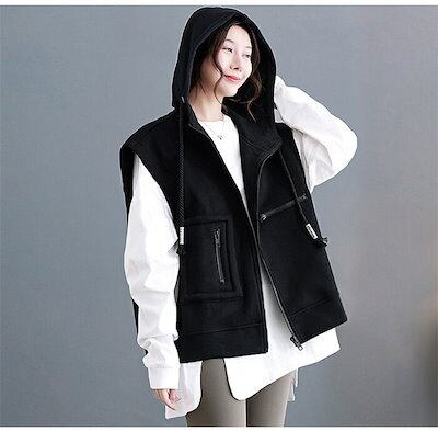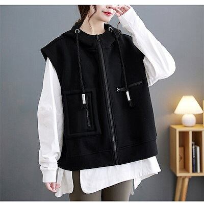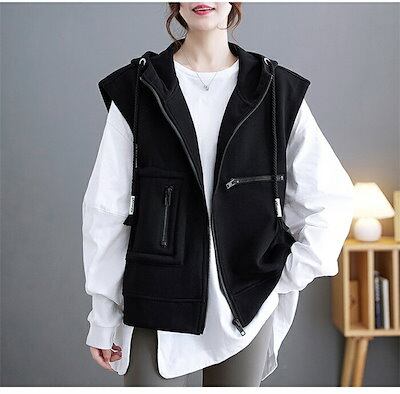 ベスト ジレ レディース フード付き ジレ カーディガン 羽織り アウター 春 秋 ベスト パーカー ノースリーブ アウター ベスト トップス カットソーベスト ビッグポケット ゆったり 大きいサイズ